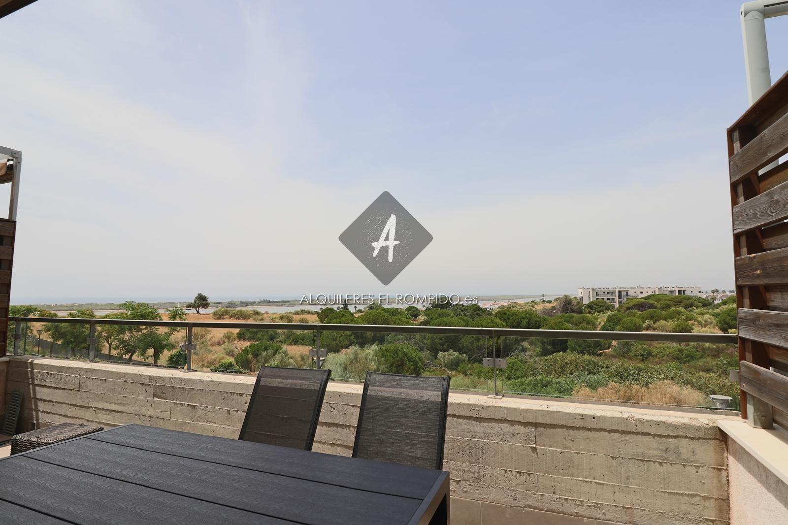 Amplia terraza equipada con toldo y preciosas vistas donde pasar la mayor parte del tiempo