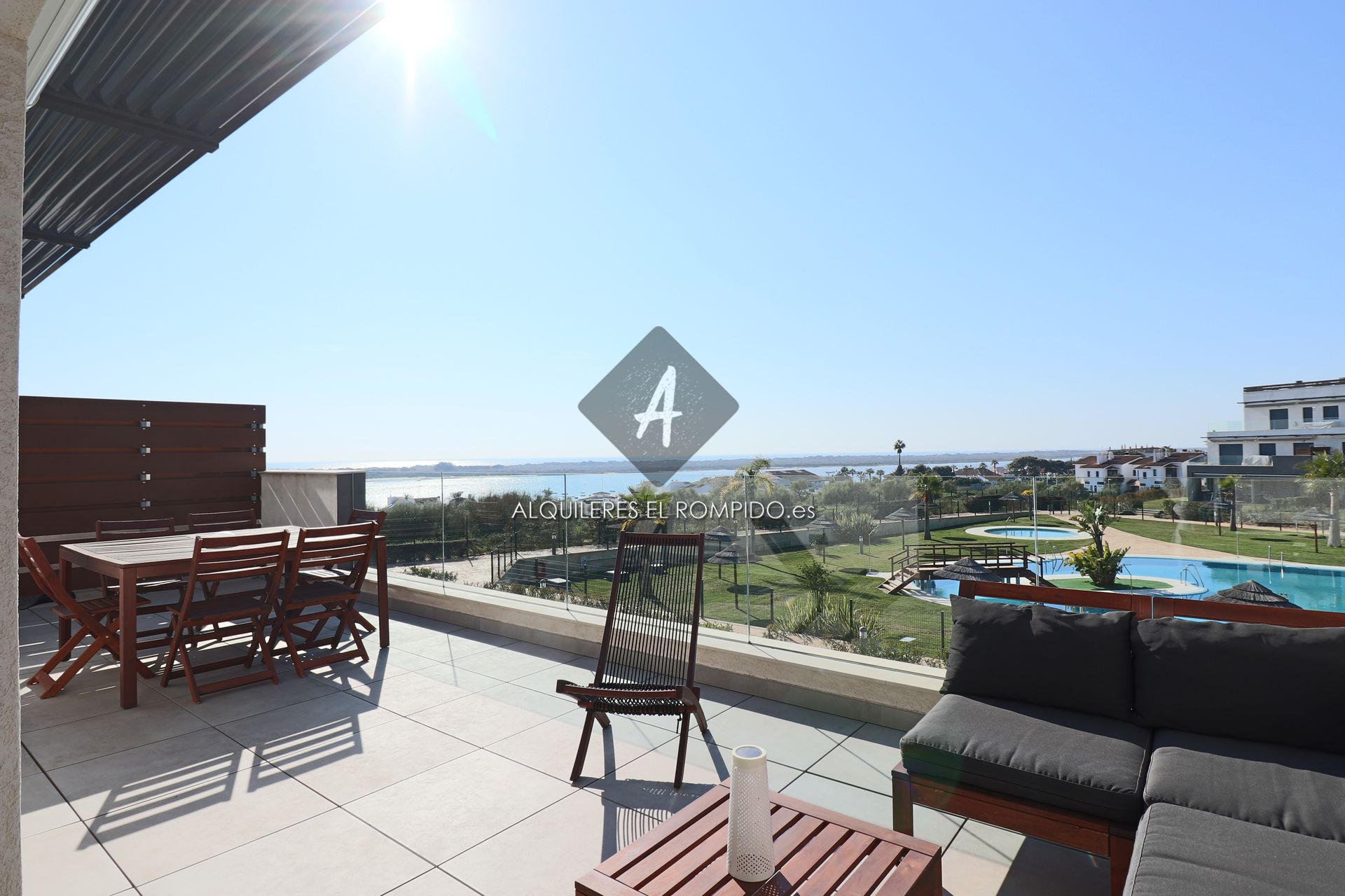 Como ático destaca su amplia terraza equipada con toldos automáticos donde pasar la mayor parte del tiempo