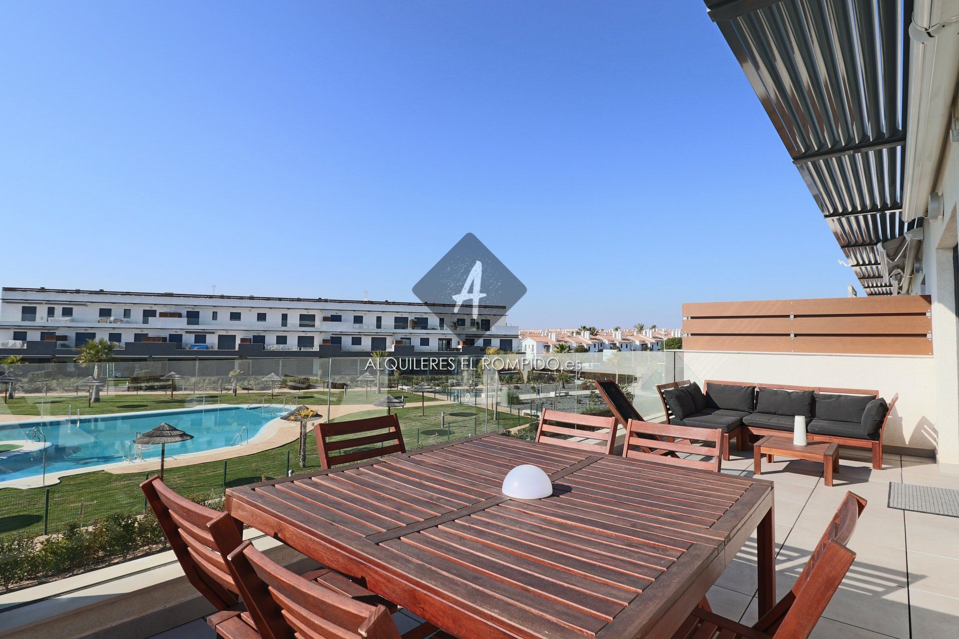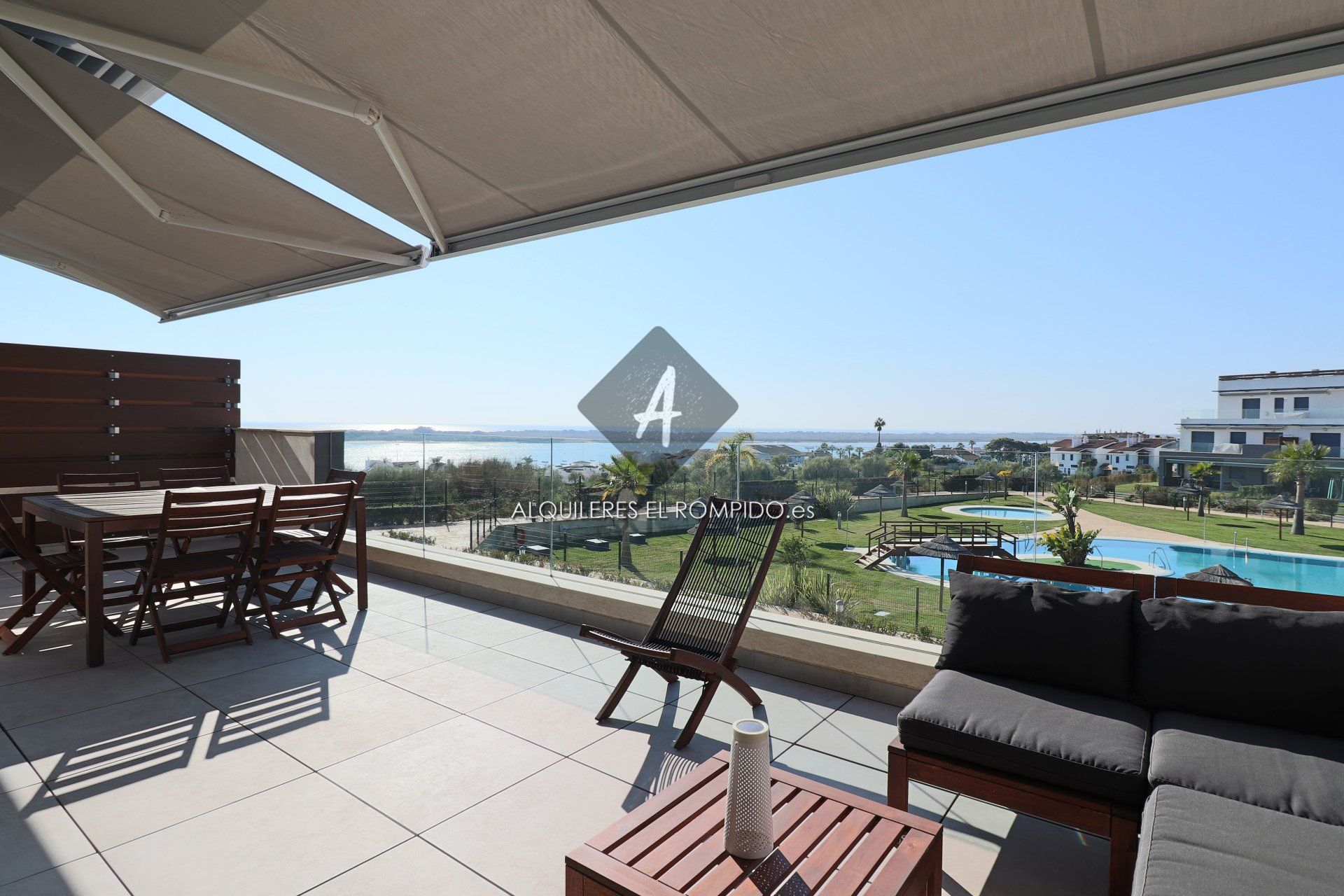 Como ático destaca su amplia terraza equipada con toldos automáticos donde pasar la mayor parte del tiempo